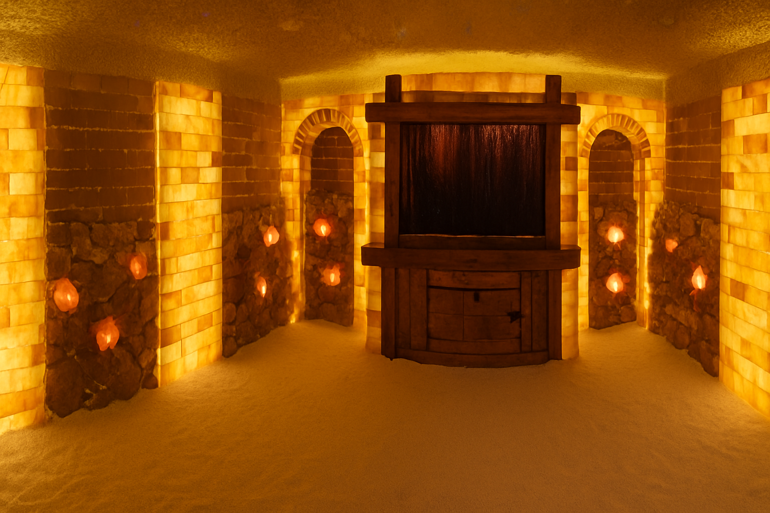 Ściany i podłoga pokryte solą himalajską oraz solą z Morza Martwego tworzą wyjątkową atmosferę, bogatą w mikroelementy takie jak jod, magnez, wapń i potas. Już 45 minut pobytu w grocie odpowiada kilkudniowemu pobytowi nad morzem!